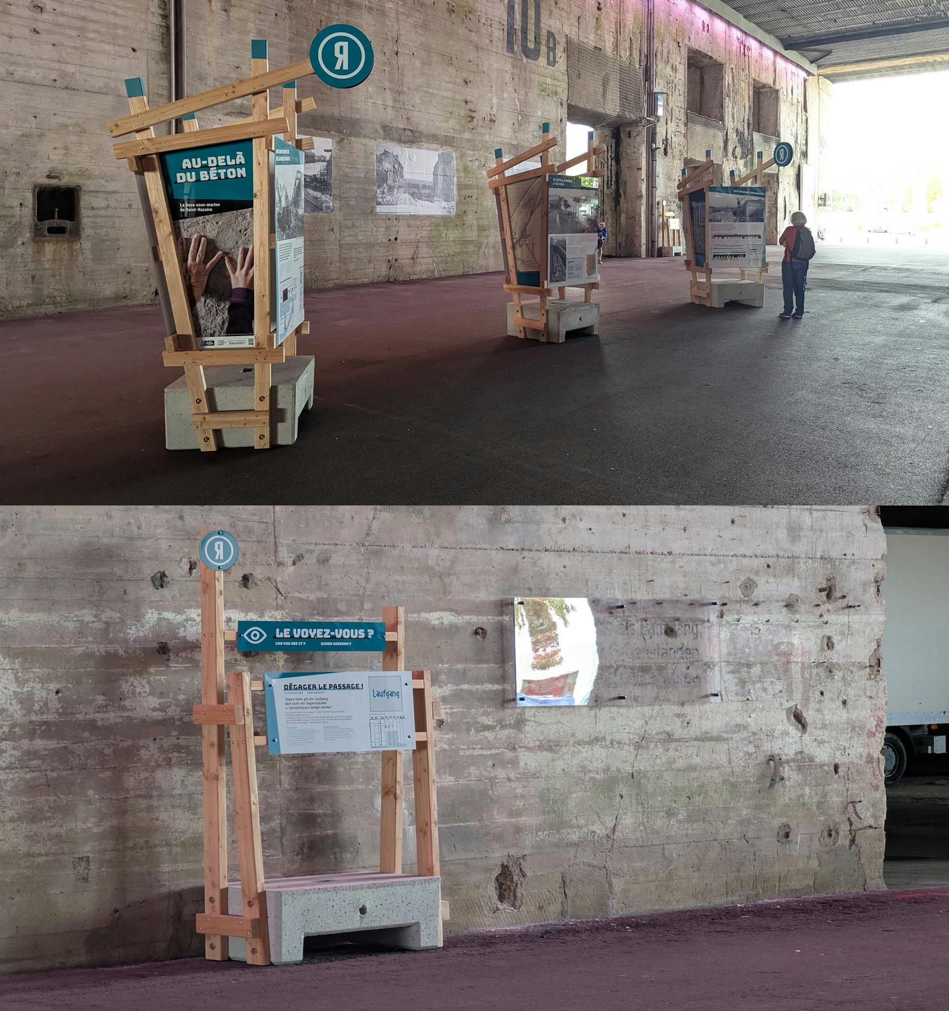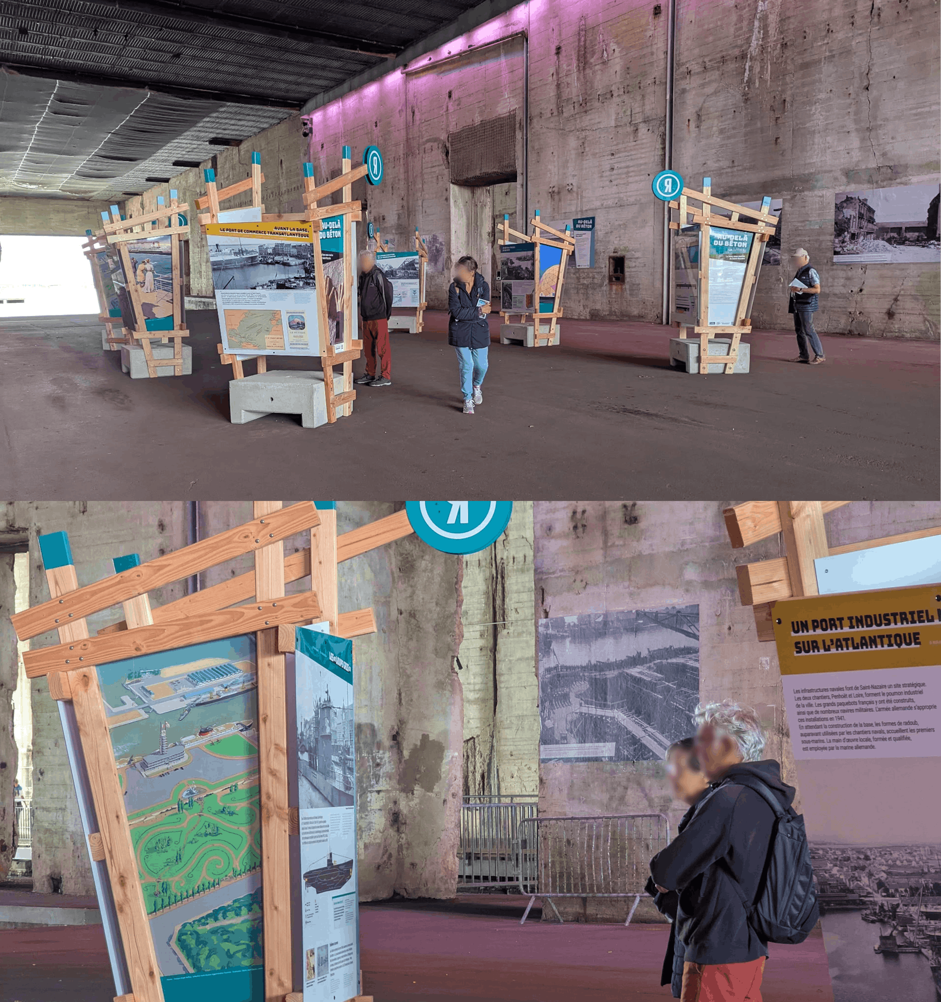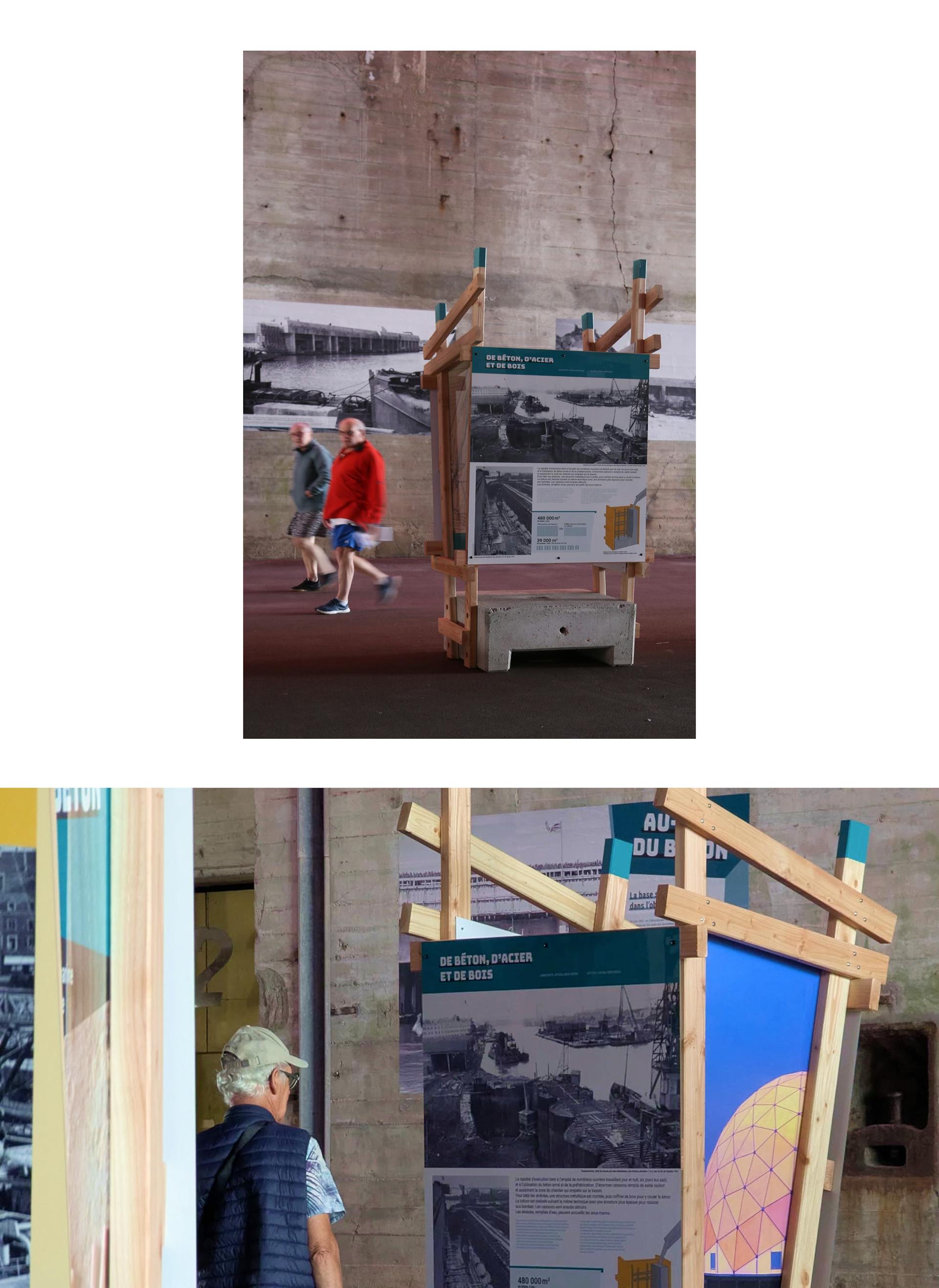 L’exposition propose un parcours qui explique le contexte historique du site, son évolution au fil du temps, ainsi que les travaux du toit de la base, leurs enjeux et leur rôle dans la préservation, la transformation et l’avenir du lieu.