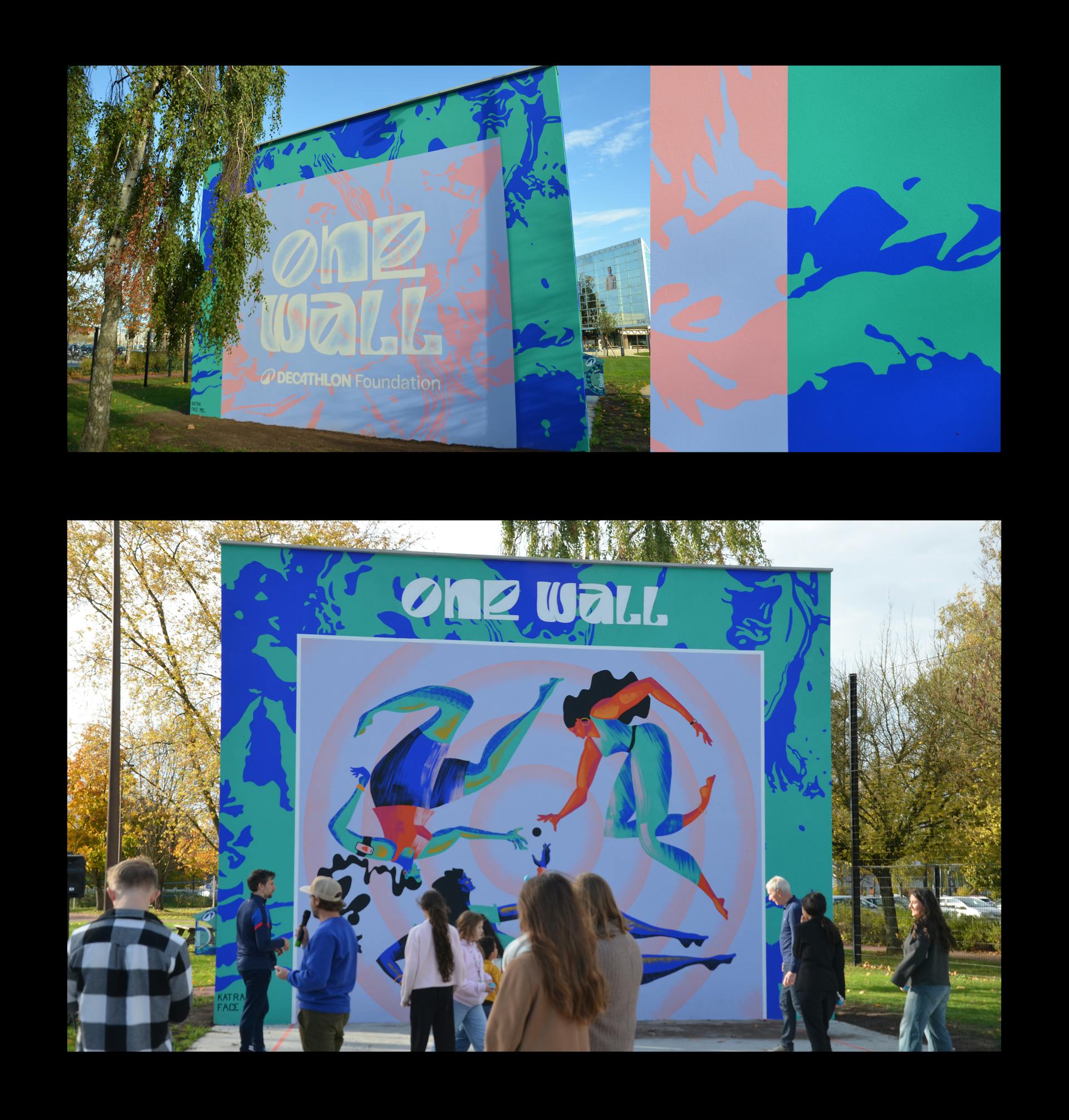 Pour célébrer les 20 ans de sa fondation, Decathlon fait le choix de projets porteurs de sens, à l’image de la construction d’un One Wall sur le campus de son siège à Villeneuve d’Ascq. Plus qu’un mur, cet espace est pensé comme un support d’expression collective et un symbole des engagements de la fondation.